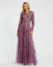 This gown boasts a high neckline, long sleeves, and beaded waist detail. Adorned with delicate hand-stitched floral sequins and beaded embellishments, it's a masterpiece for your next special occasion.