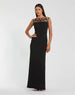 Elevate your evening look in this sleek crepe gown. Delicate satin bows adorn the sheer illusion neckline, adding a modern touch to this timeless silhouette. Perfect for formal occasions, galas, and black tie events, this dress seamlessly blends glamour and sophistication.