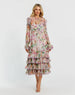 This chic shift dress features ruffled shoulders and sleeve cuffs, while the vibrant floral print and tiered ruffle skirt create a graceful, flirty silhouette that effortlessly blends elegance with playfulness—ideal for brunches, daytime events, or garden parties.