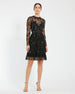 This exquisite dress features delicate sheer long sleeves that add a touch of allure, while intricate embellishments create a captivating sparkle. The flattering midi length makes it perfect for cocktail parties, formal events, or special occasions.